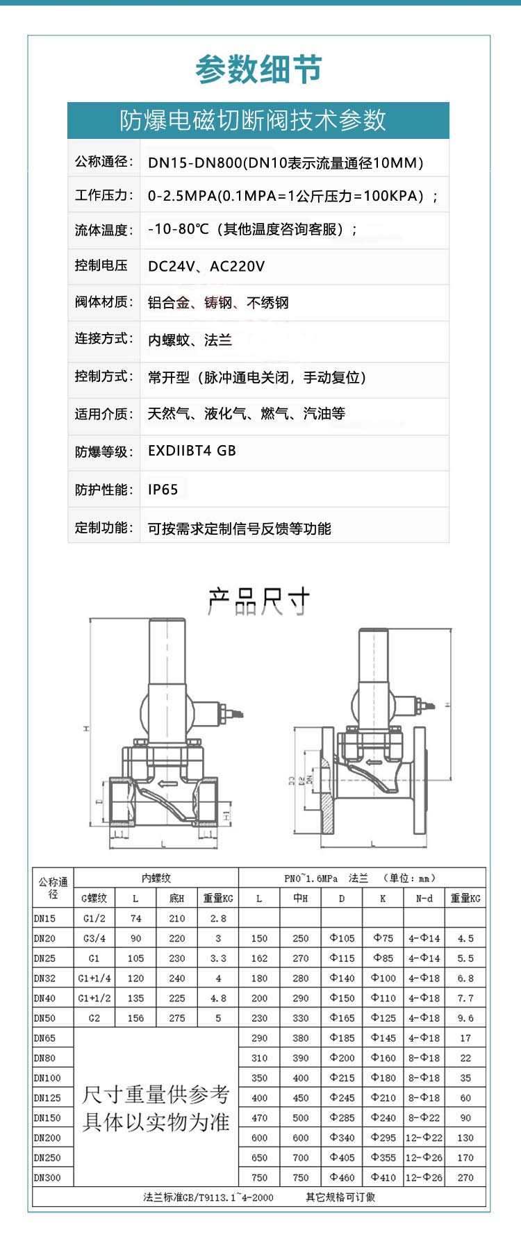 一、紧急切断电磁阀(断电关闭型)技术参数