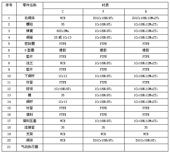 注:主要零部件及密封圈的材质亦可根据实际工况条件或用户特殊要求设计选用.
