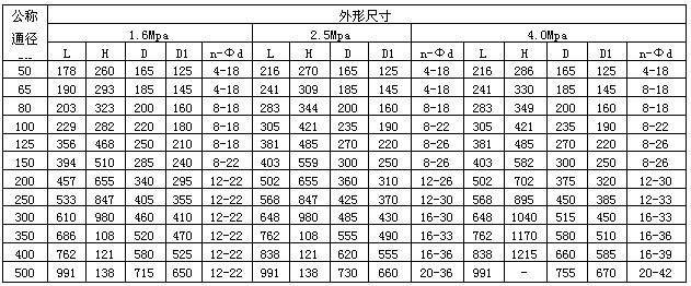 主要外形及连接法兰尺寸