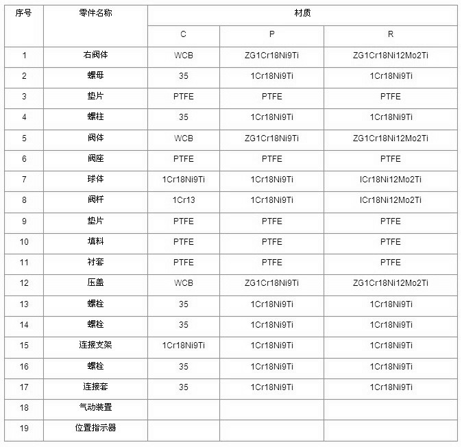 主要零部件及密封圈的材质亦可根据实际工况条件或用户特殊要求设计选用。