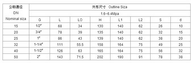 公称通径:DN25-50mm