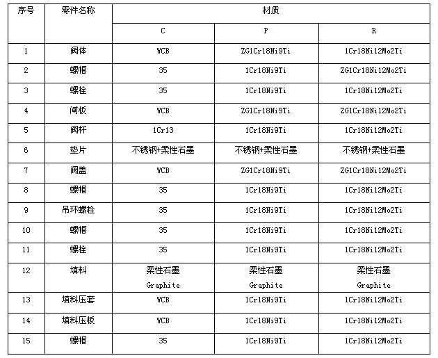 注:主要零部件及密封圈的材质亦可根据实际工况条件或用户特殊要求设计选用.