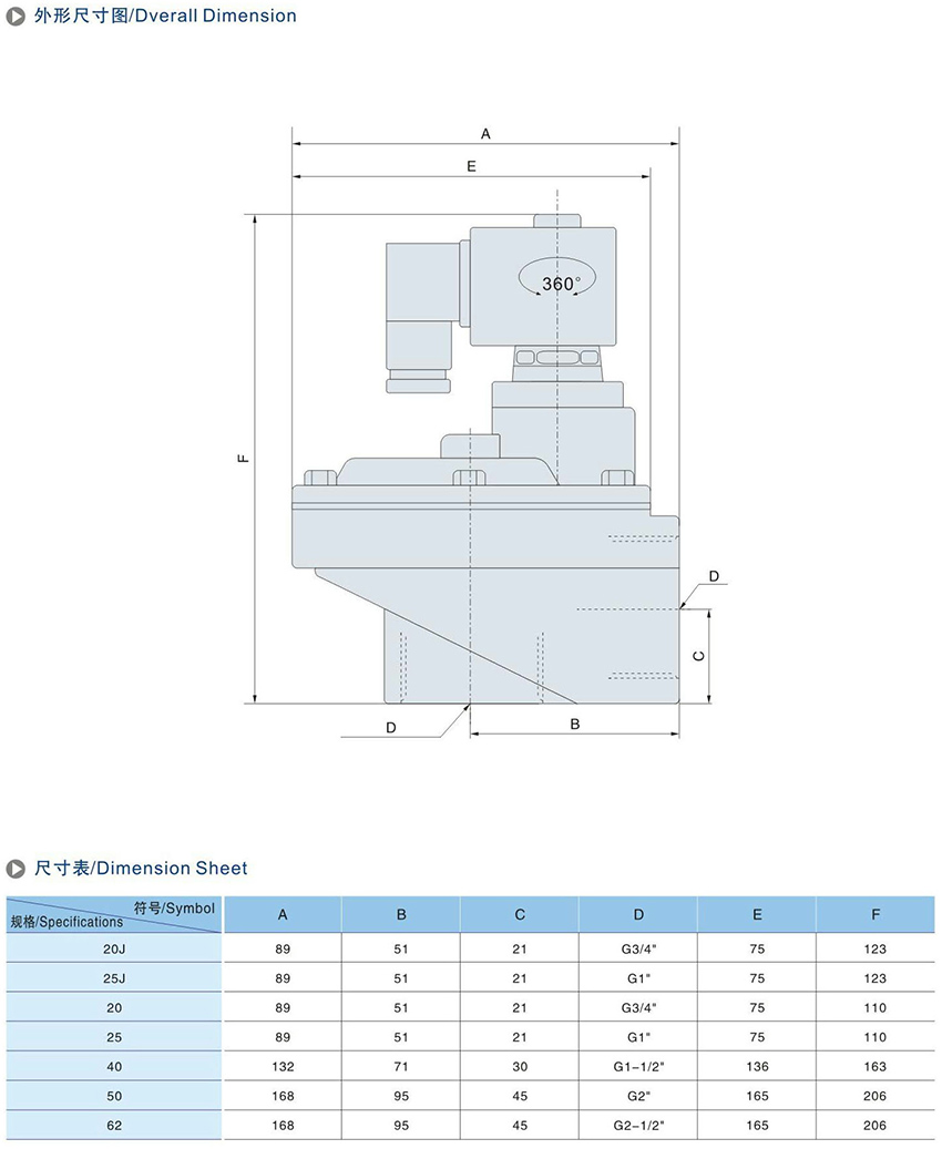 公称通径:DN15~DN100mm
